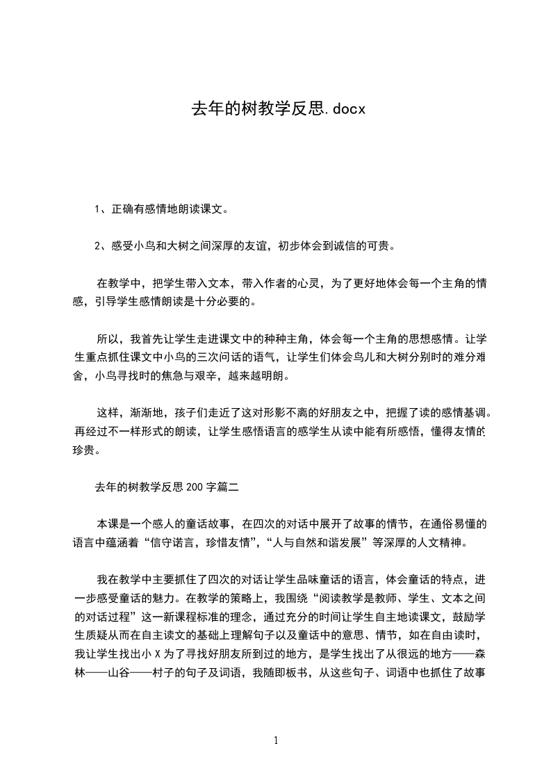 《去年的树》是一篇感人至深的童话故事,用朴实的语言讲述了鸟儿和树之间的真挚情谊。这篇课文的教学设计中,我确立了两个重要教学目标:1、正确有感情地朗读课文。2、感受小鸟和大树之间深厚的友谊,初步体会到诚信的可贵。
