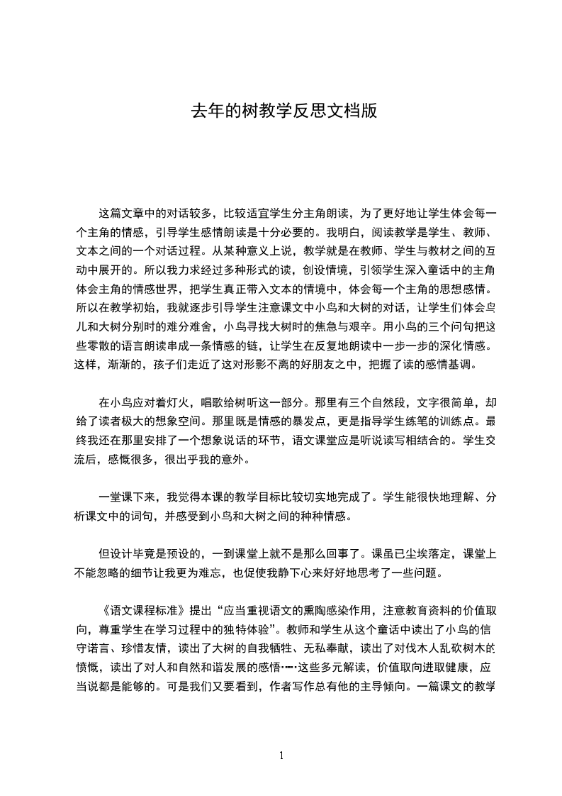 四年级上册去年的树教学反思6
