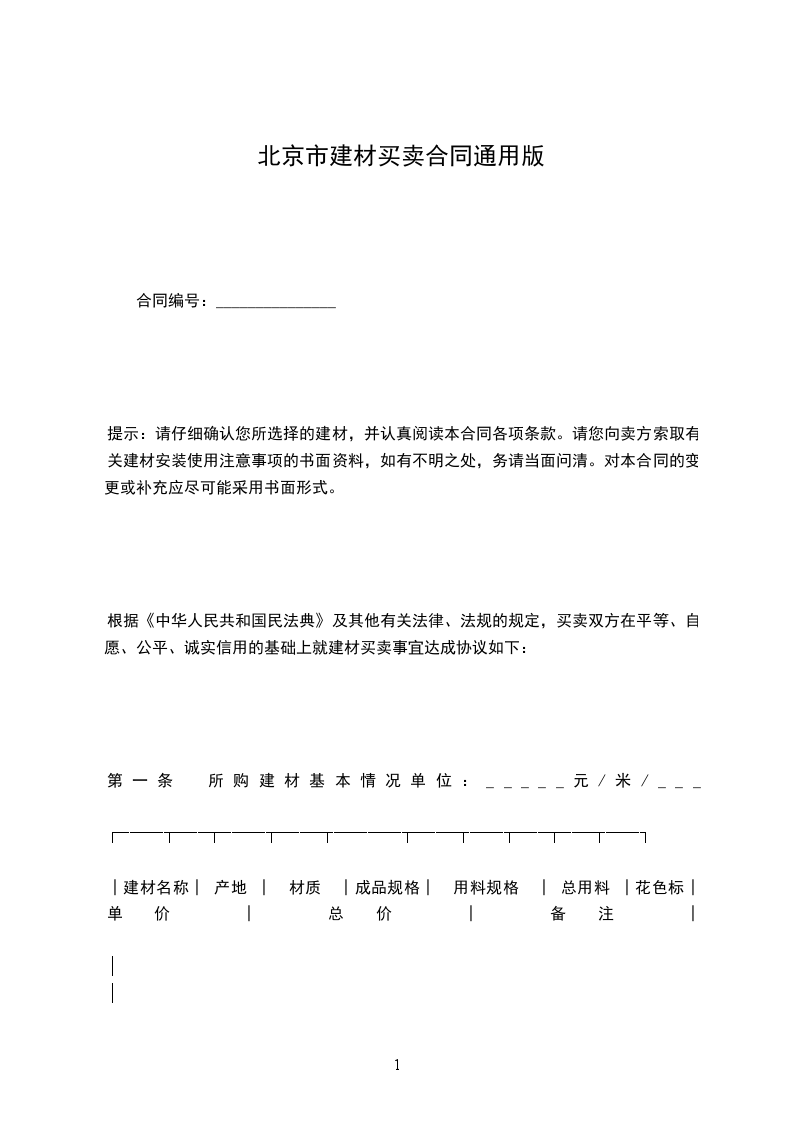 根据《中华人民共和国民法典》及其他有关法律、法规的规定,买卖双方在平等、自愿、公平、诚实信用的基础上就建材买卖事宜达成协议如下: