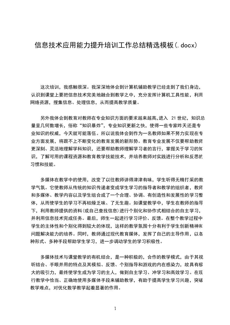 这次培训,我感触很深。我深深地体会到计算机辅助教学已经走到了我们身边,认识到课堂上要把信息技术完美地融合到教学之中,充分发挥计算机工具性能,利用网络资源,搜集信息、处理信息,从而提高教学质量。