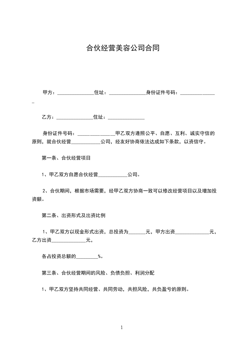 1.由全体合伙人共筹资100万元用于金昌市范围内的二手车交易的经营。