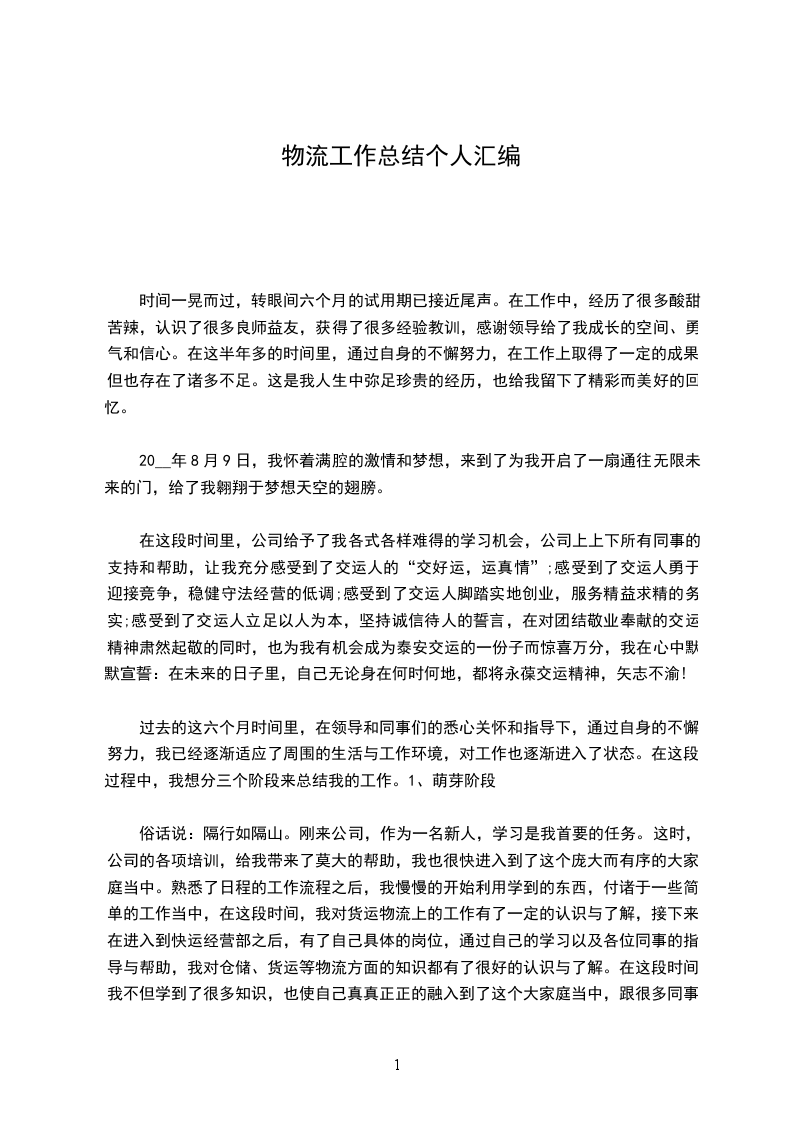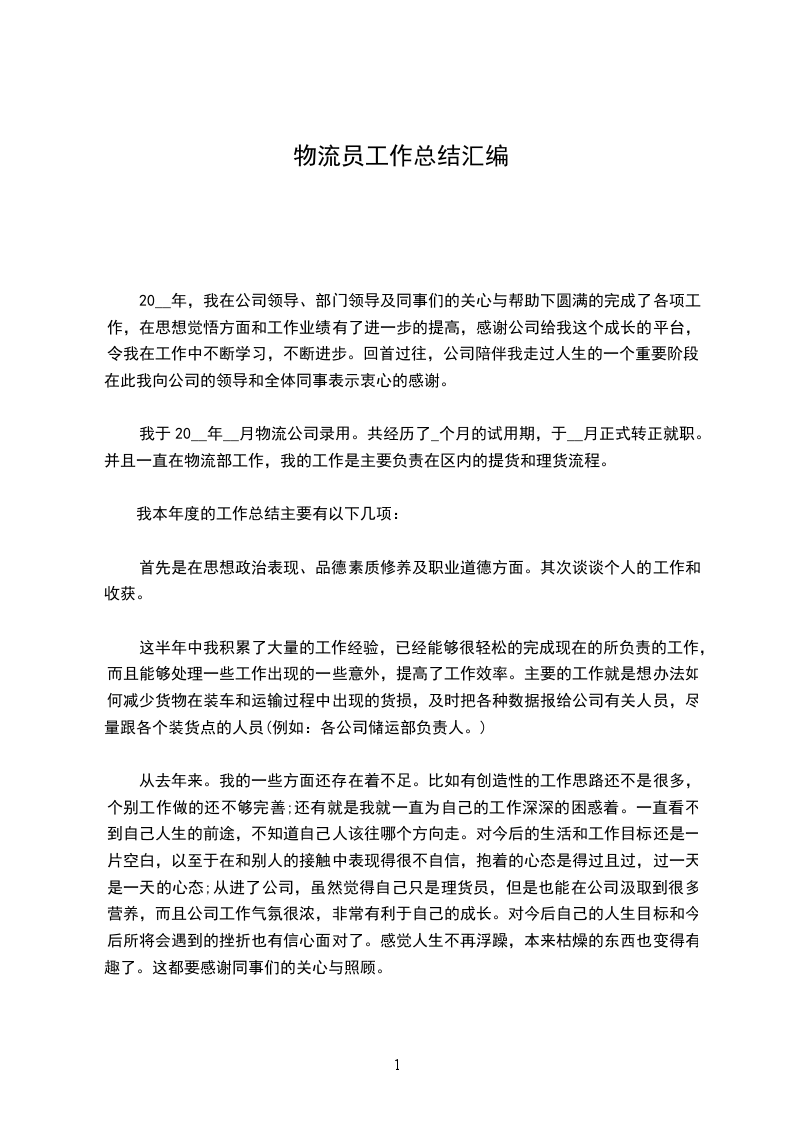 20__年,物流营运中心在公司领导的高度重视和全力支持下,认真执行公司整合施行的方案,精细化管理全局,不断提升驾驶员、管理人员的职业素质和服务水平,紧密关注市场动态;积极扩大业务规模;精心寻求新产业突破;有效执行项目绩效奖励制度;切实改善员工工作环境。全体员工同心同德、群策群力,确保了公司主营业务稳步发展,产业多元化探索有所收获,超额完成了上班年度的目标任务。现将20__年度工作总结以及工作打算报告如下: