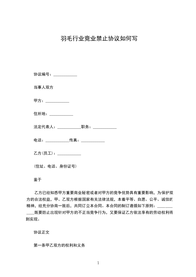 1、未经甲方同意,在职期间不得自营或者为他人经营(包括投资于)与甲方同类的营业。