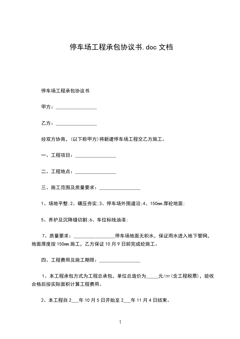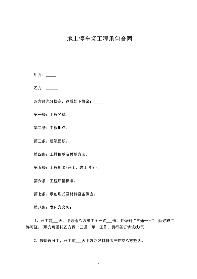 鉴于:甲乙双方就_______路_______号至_______号停车场的使用事宜,双方经协商一致,达成停车场承包合同,合同如下: