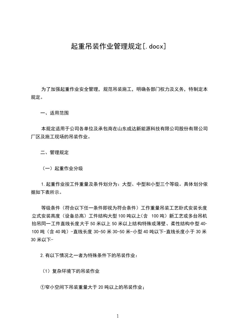 本规定适用于公司各单位及承包商在山东成达新能源科技有限公司股份有限公司厂区及施工现场的吊装作业。
