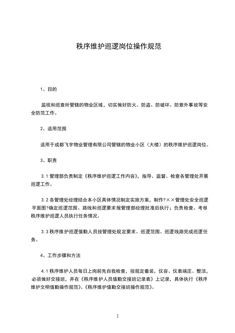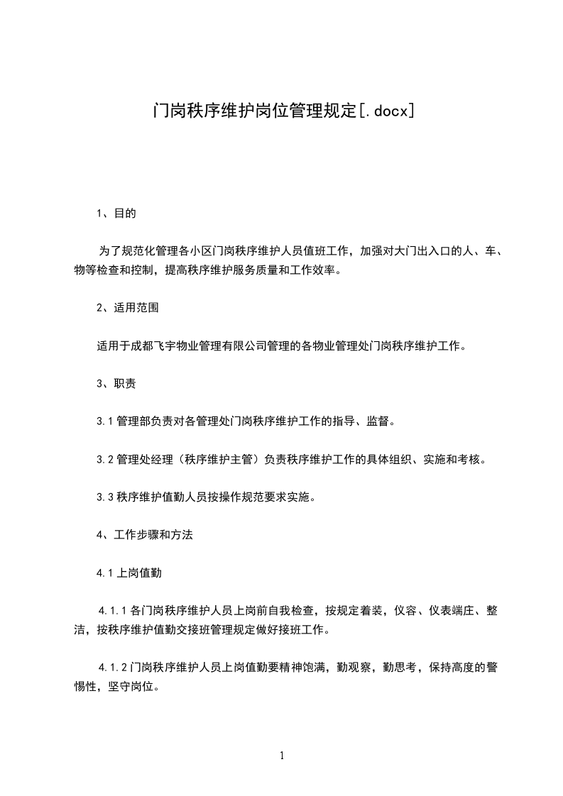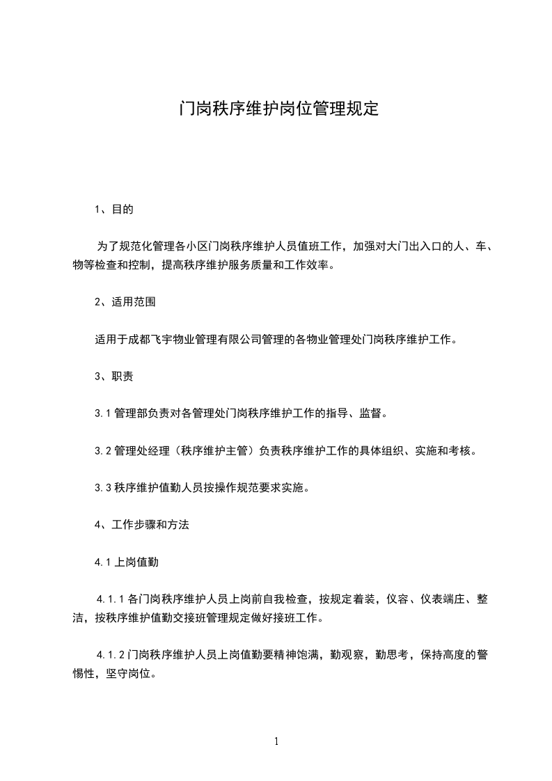 适用于成都飞宇物业管理有限公司管理的各物业管理处门岗秩序维护工作。