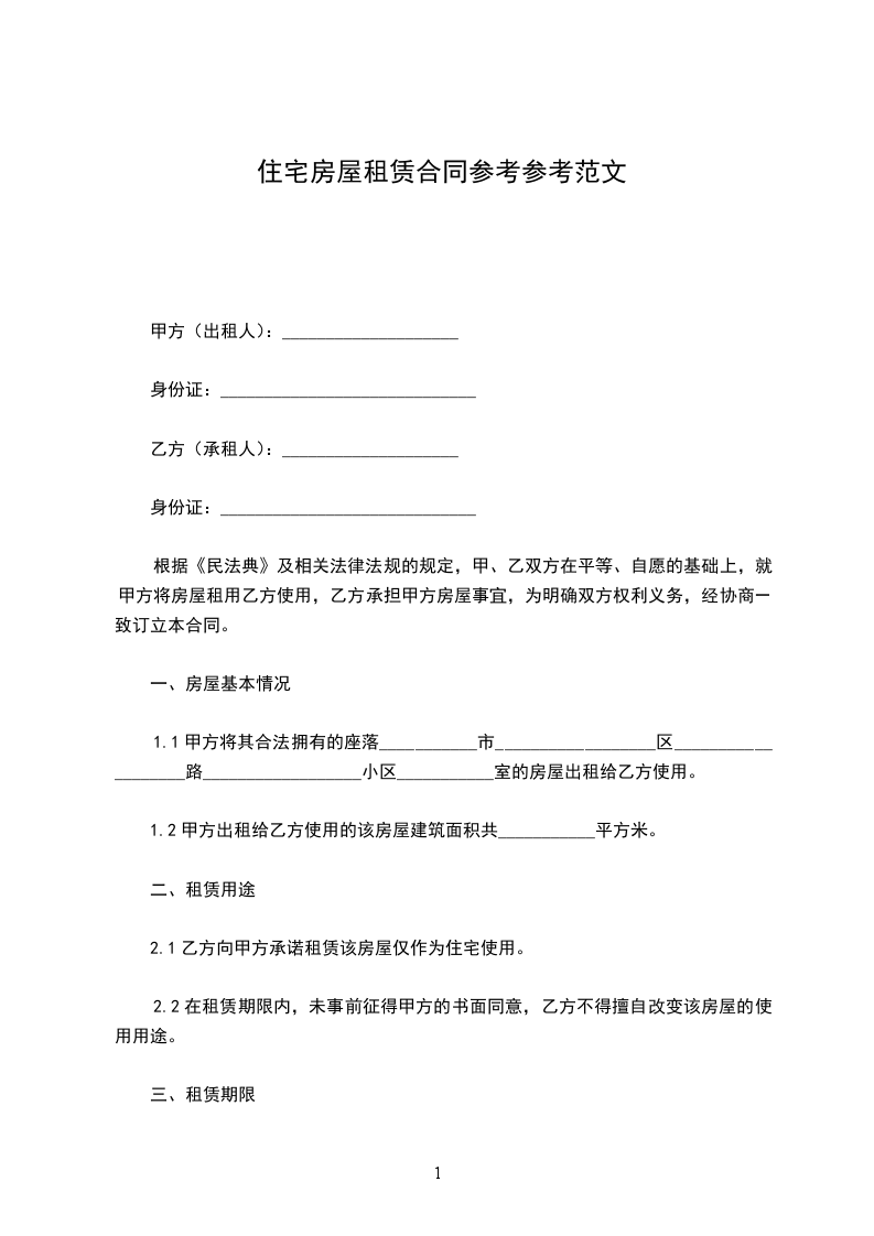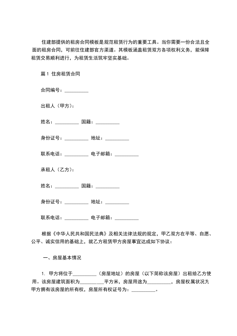 第一条出租房屋坐落地址_____________________________。