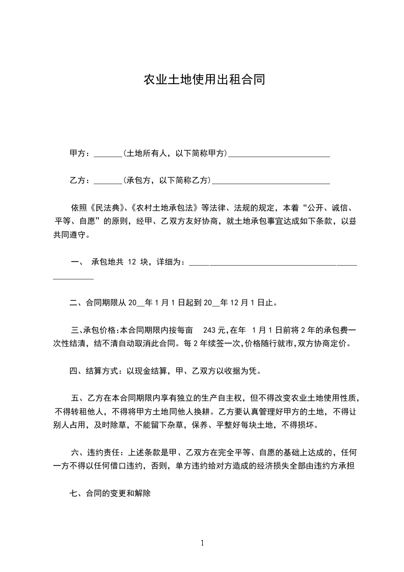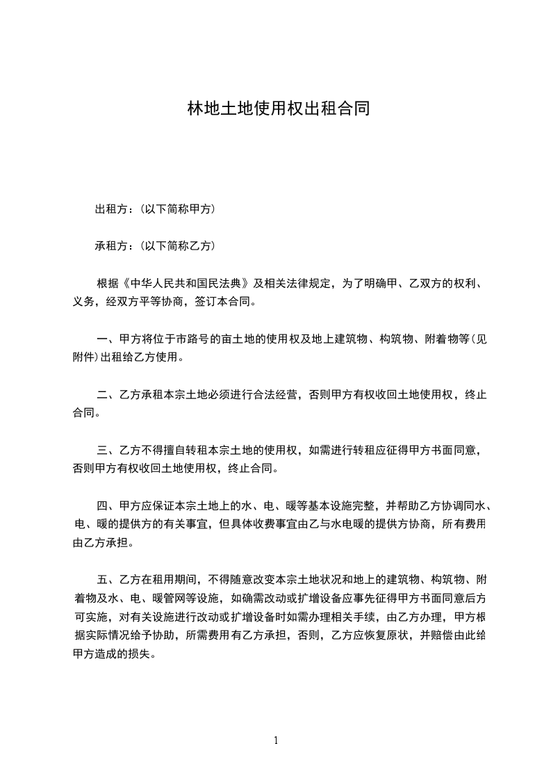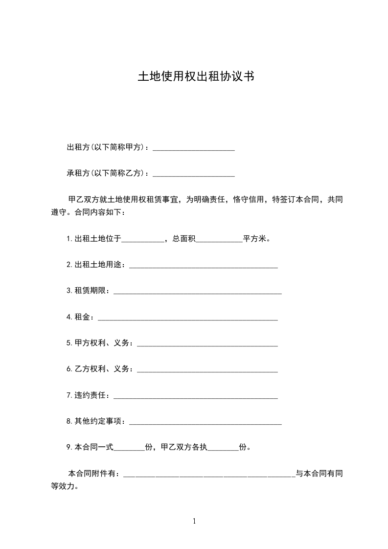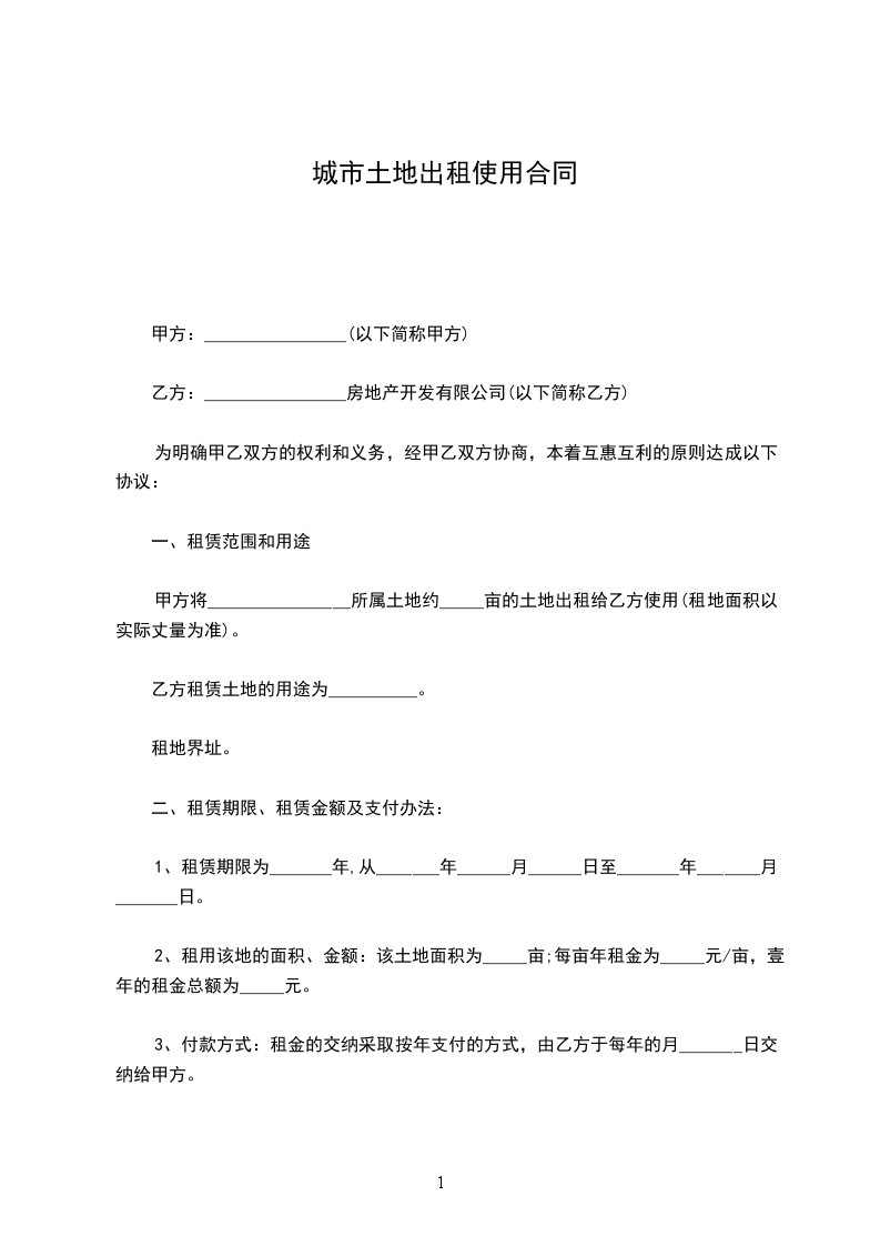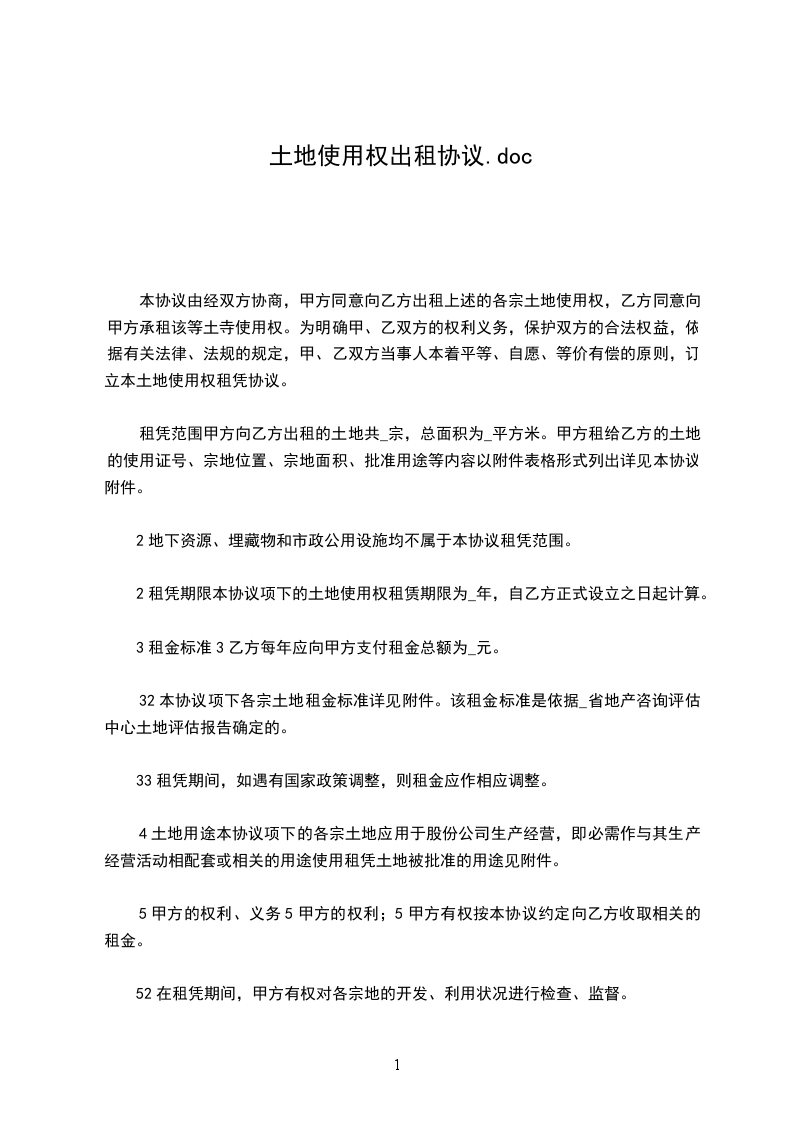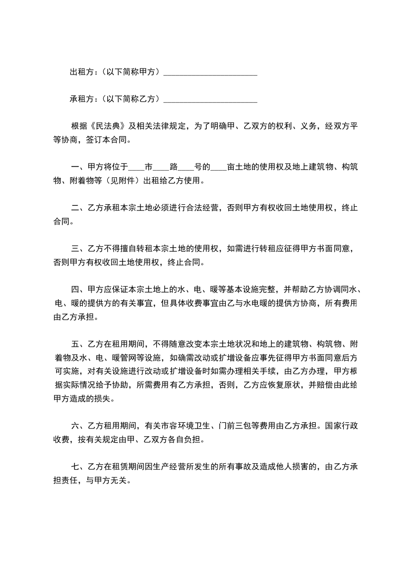 一、甲方将位于____市____路____号的____亩土地的使用权及地上建筑物、构筑物、附着物等(见附件)出租给乙方使用。