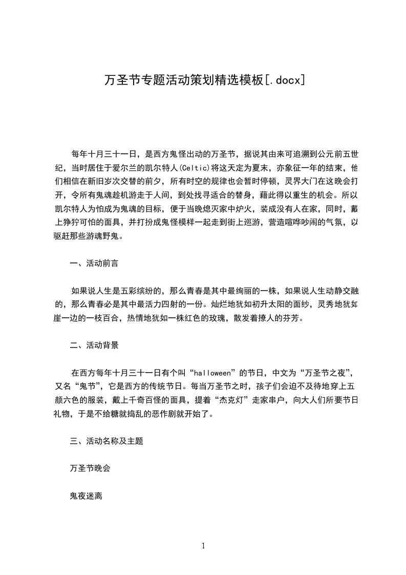 1)视频展示。以一段简短的视频引出万圣节背景,包括万圣节的起源和传播,风俗,象征物,以及同名电影等。简要的介绍万圣节,让观众大致的了解万圣节的起源以及主要的活动