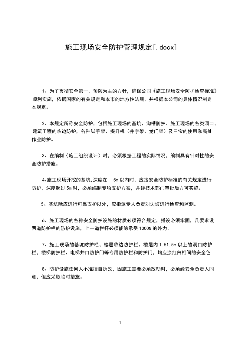 1、为了贯彻安全第一,预防为主的方针,确保公司《施工现场安全防护检查标准》顺利实施,依据国家的有关规定和本市的地方性法规,并根据本公司的具体情况制定本规定。