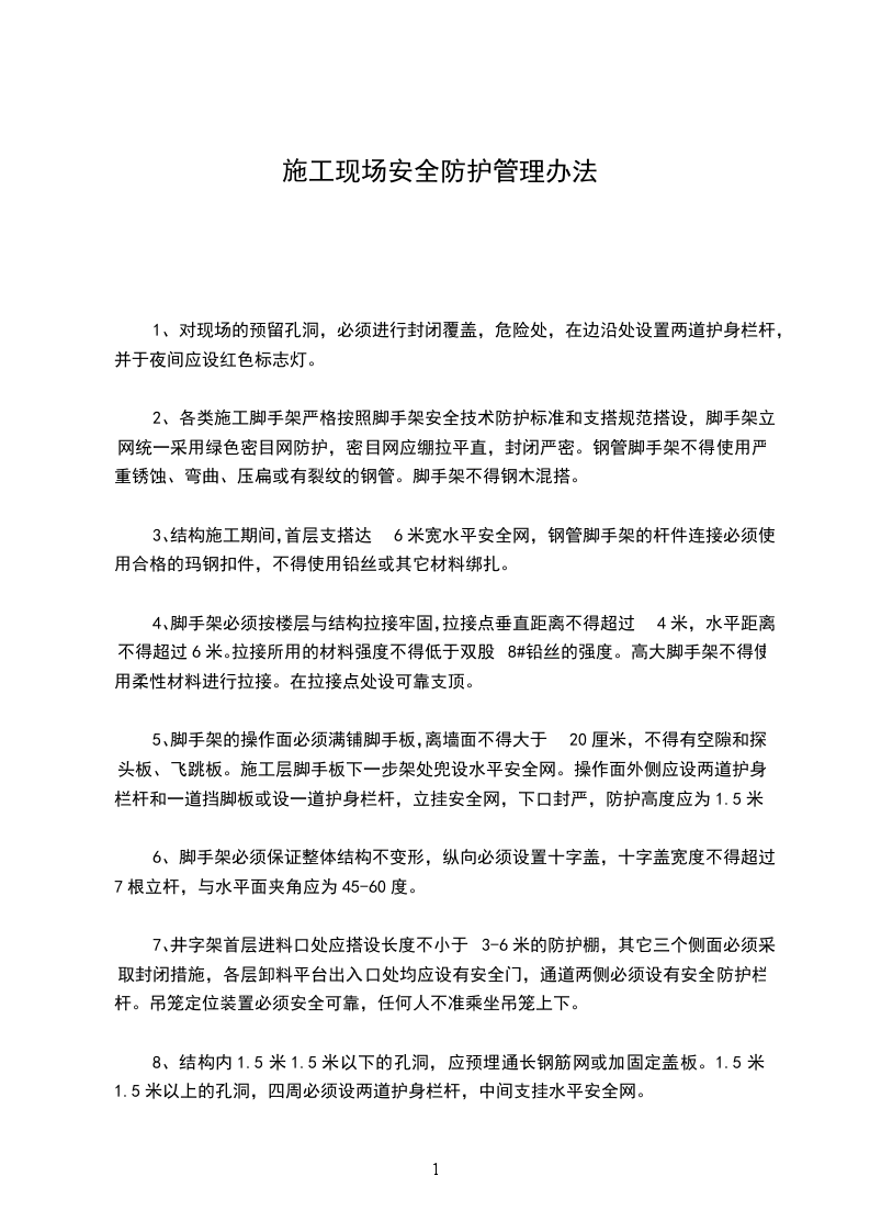 2、本规定所称安全防护,包括施工现场的基坑、沟槽防护、施工现场的各类洞口、建筑工程的临边防护,各种脚手架、提升机(井字架、龙门架)及三宝的使用和高处作业防护。