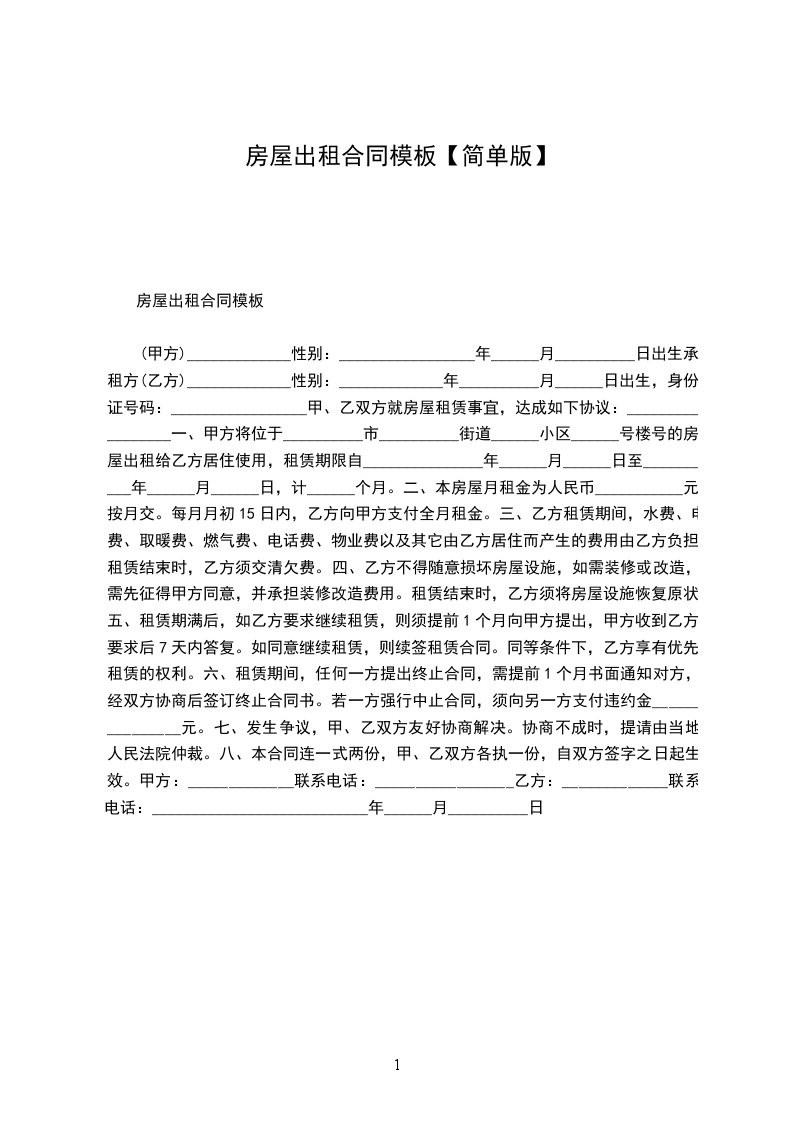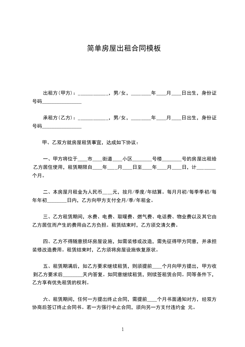 承租方(乙方):____________,男/女,________年____月____日出生,身份证号码________________