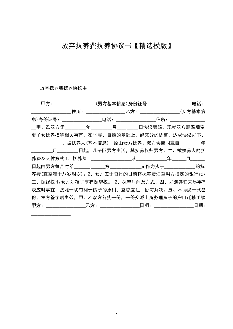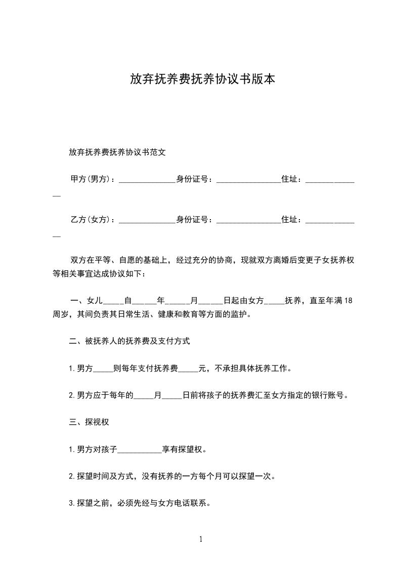 一、双方一致同意孩子________的抚养权归女(男)方________。