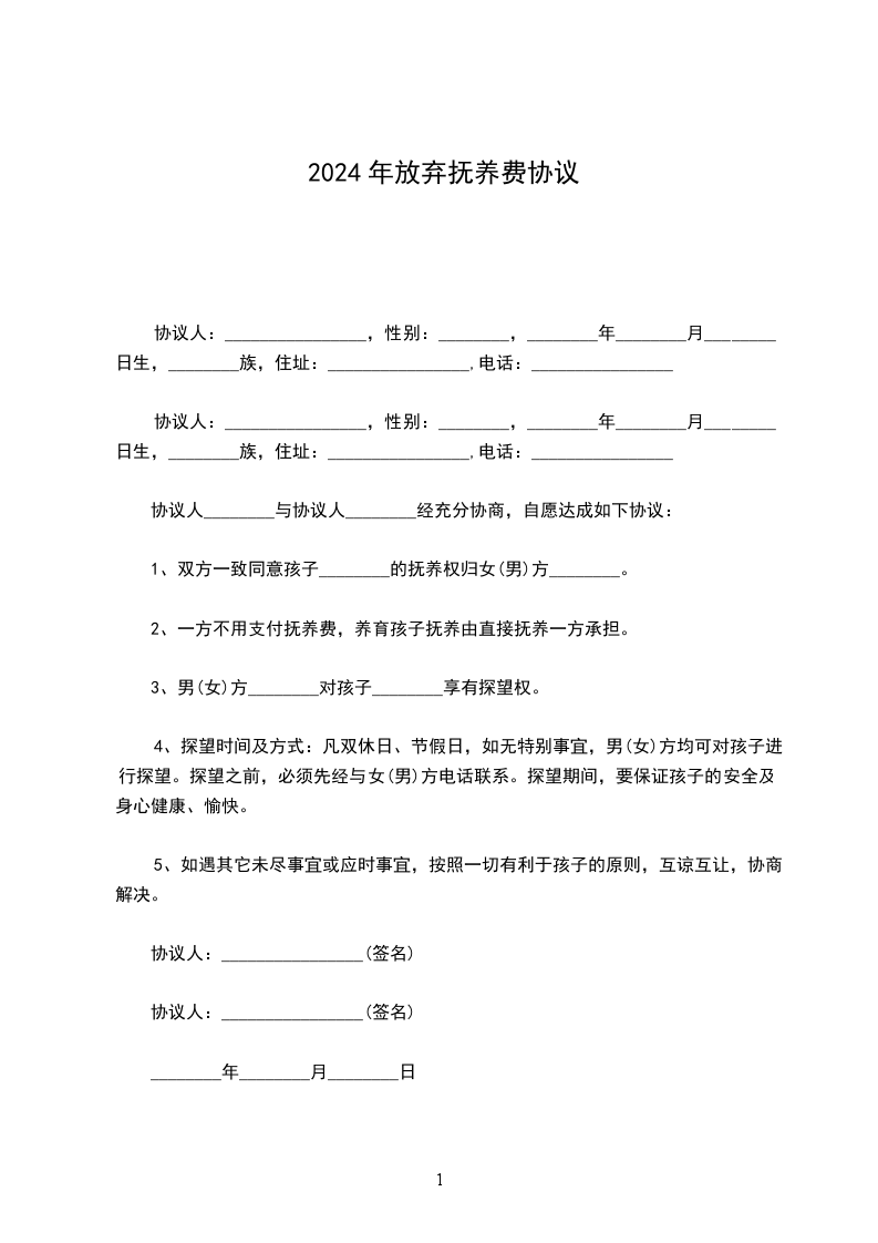 协议人:________(姓名、性别、出生年月、民族、单位、住址)