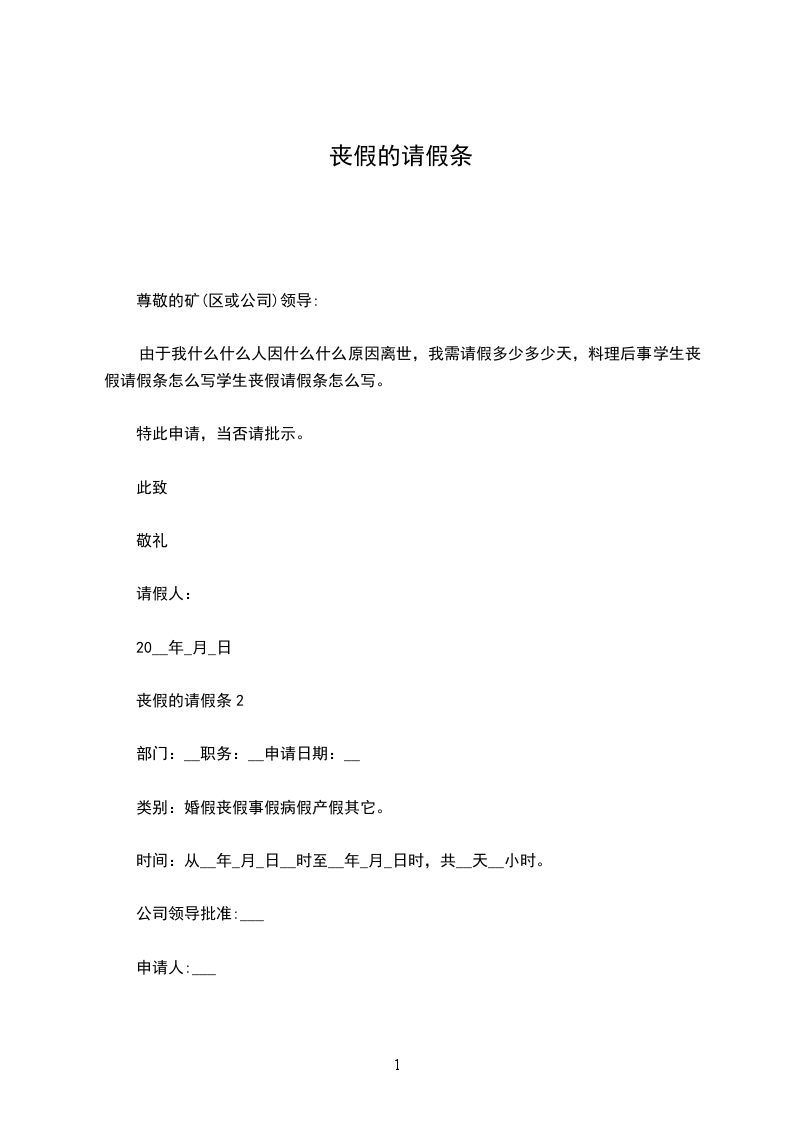 丧假的请假条2