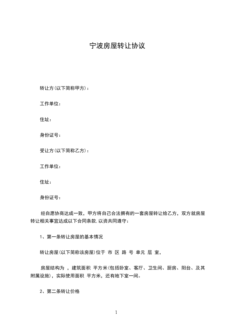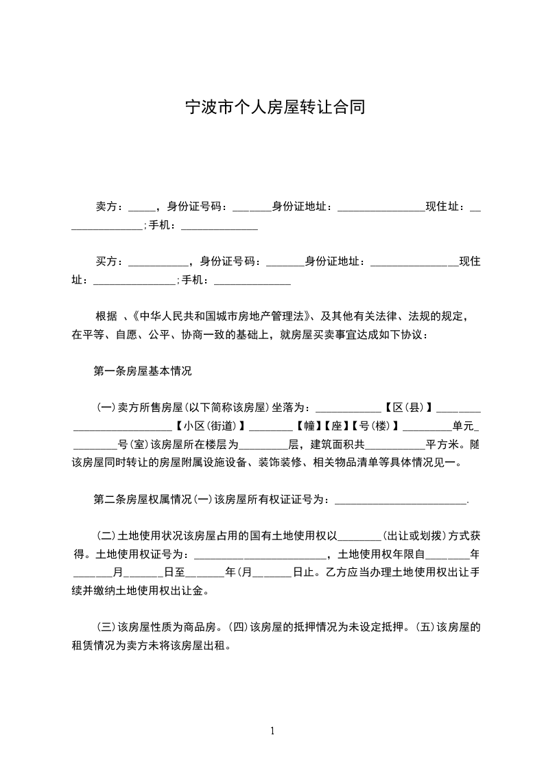 1、第一条转让房屋的基本情况