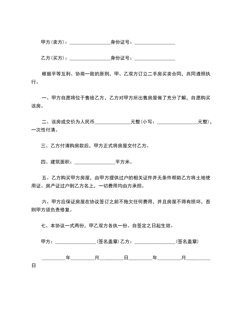根据平等互利、协商一致的原则,甲、乙双方订立二手房买卖合同,共同遵照执行。