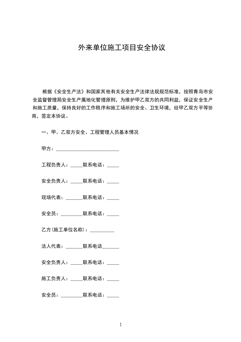 (一)安全管理