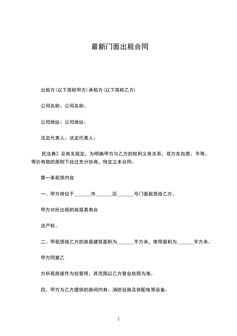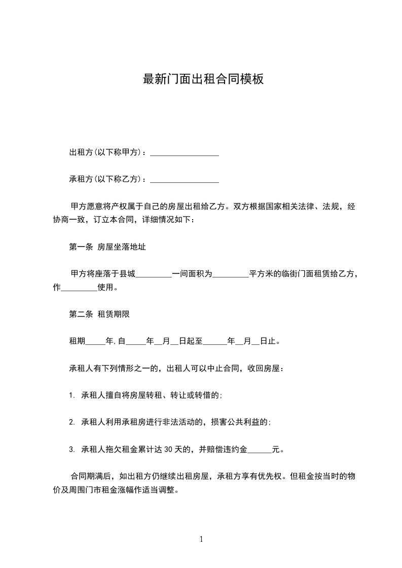 甲方将座落于县城_________一间面积为_________平方米的临街门面租赁给乙方,作_________使用。