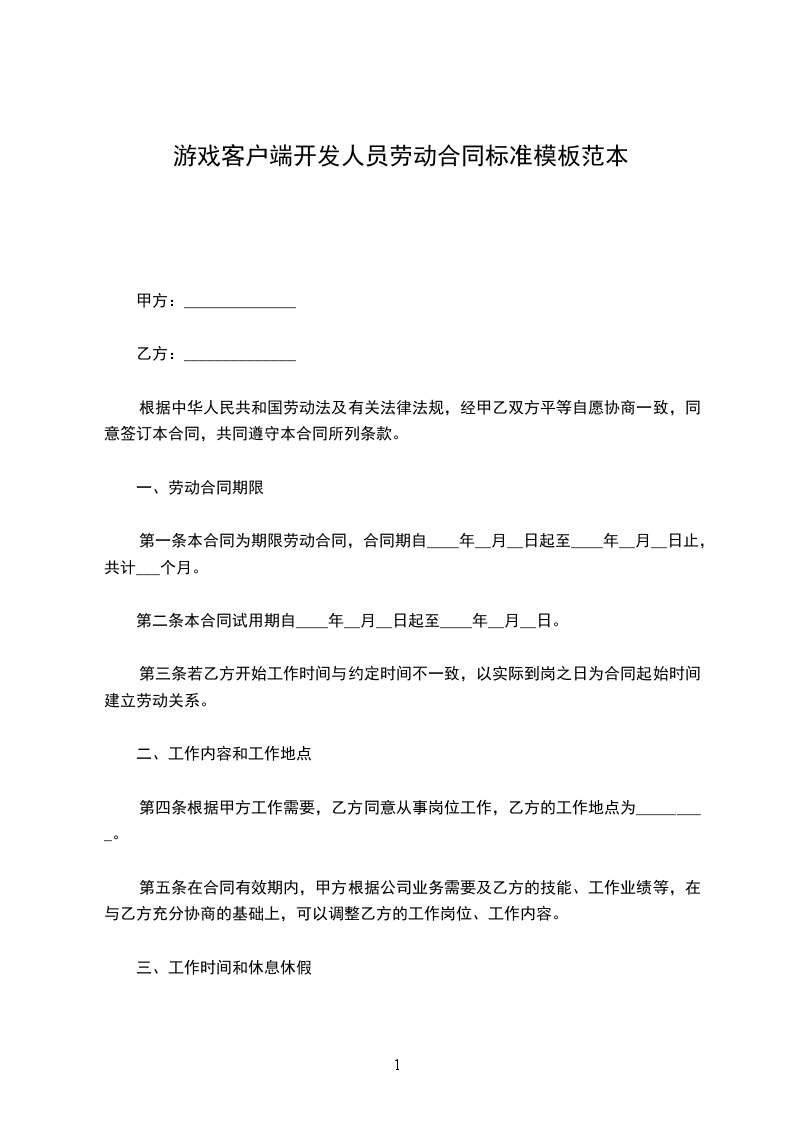 游戏客户端开发员员工保密合同