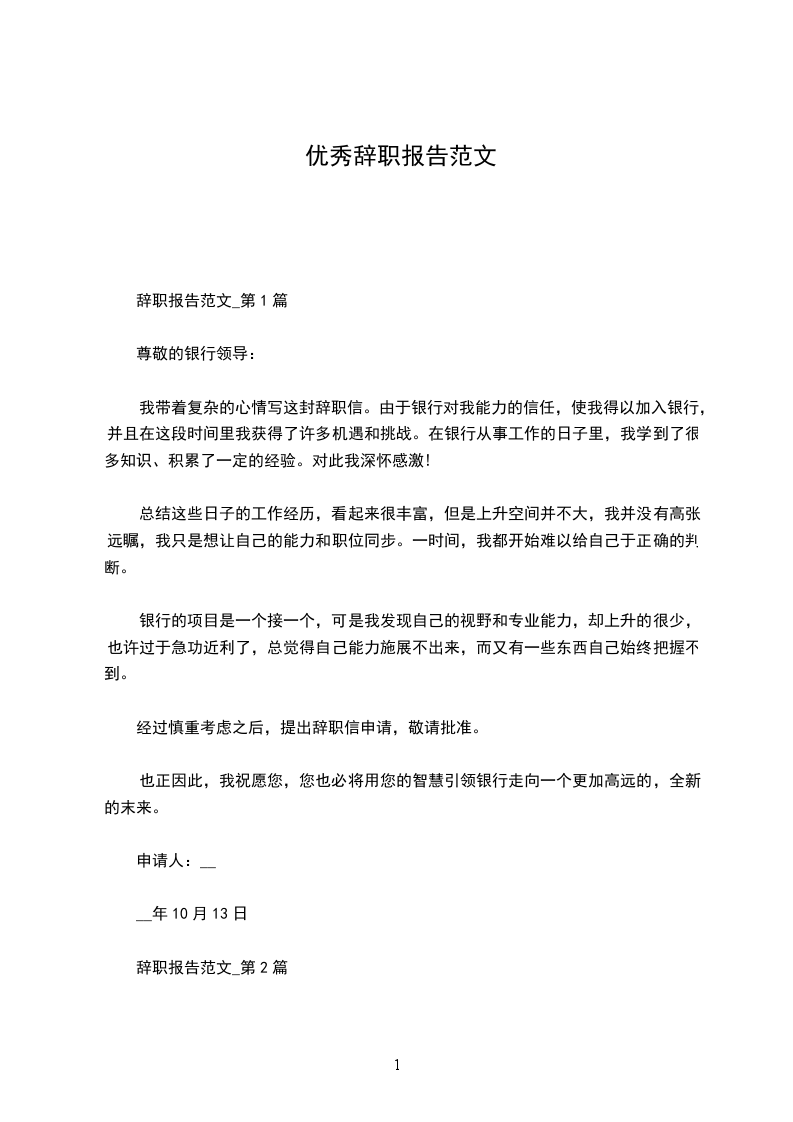 申请人:辞职报告
