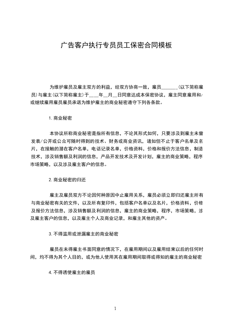 广告客户总监员工保密合同