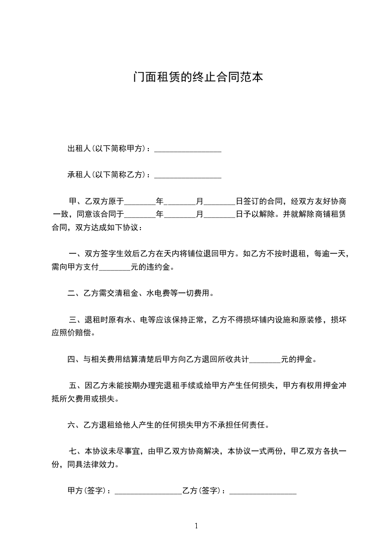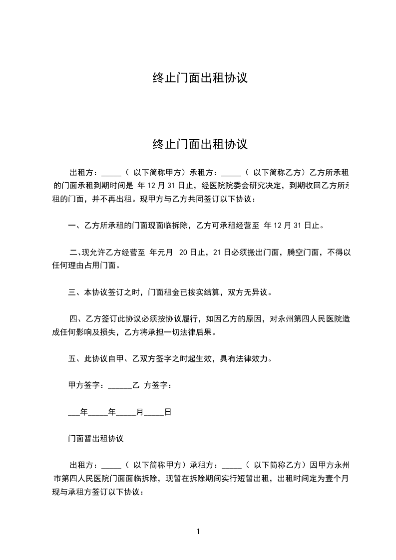 门面租赁终止协议