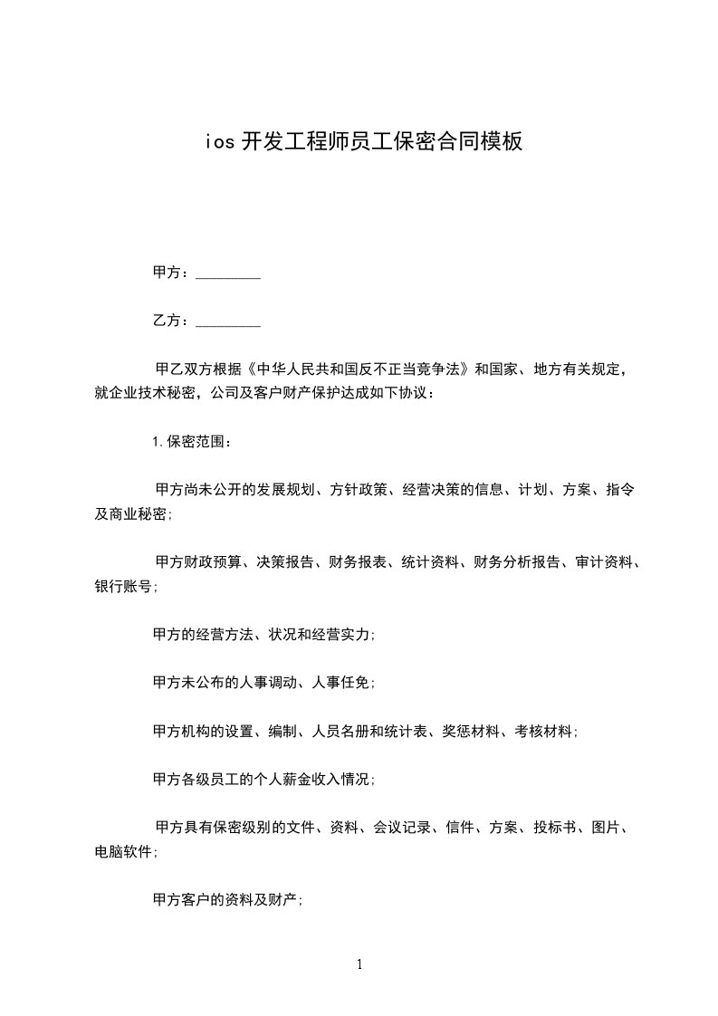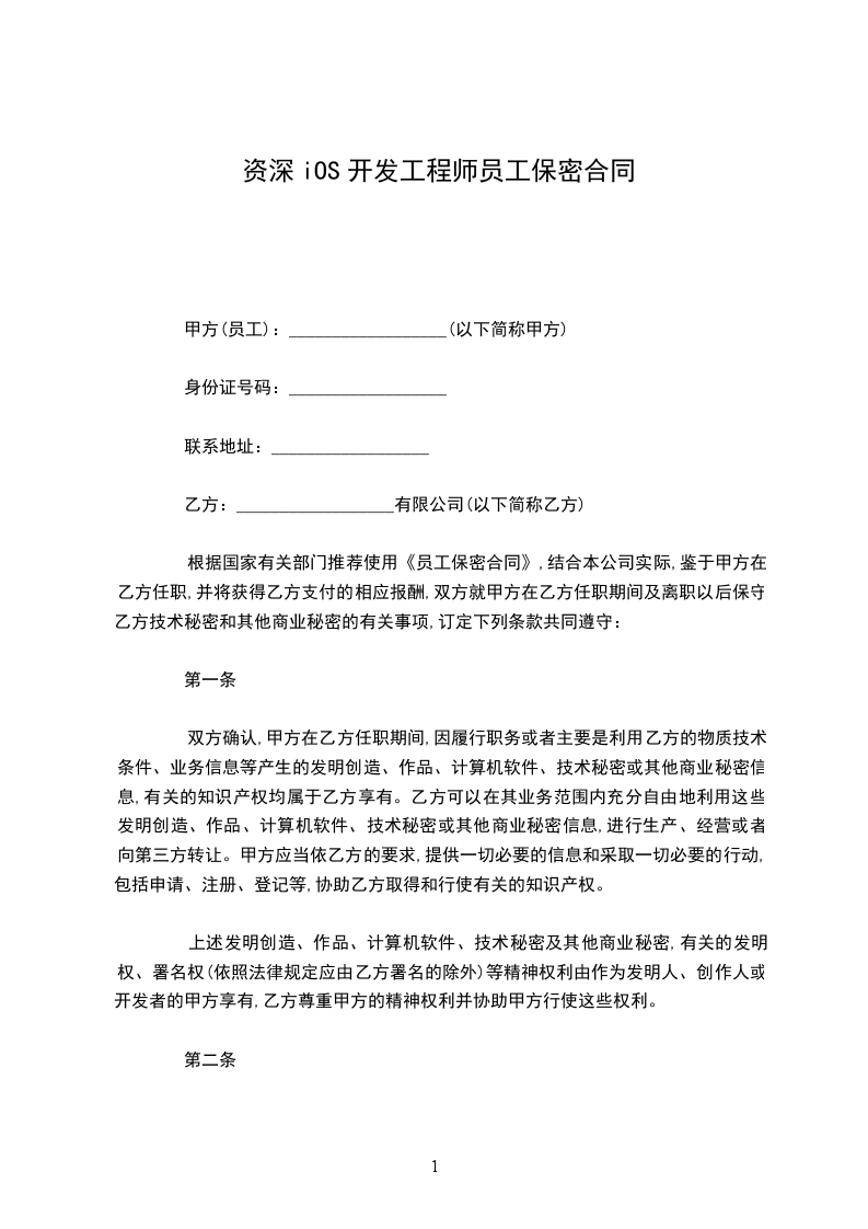 ios高级开发工程师员工保密合同