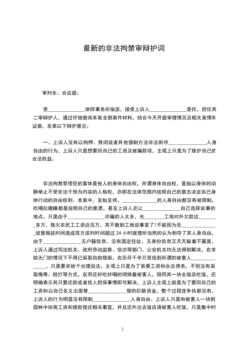 一、上诉人没有以拘押、禁闭或者其他强制方法非法剥夺_______________人身自由的行为,上诉人只是想要回自己的工资及被骗款项,主观上只是为了维护自己的合法权益。