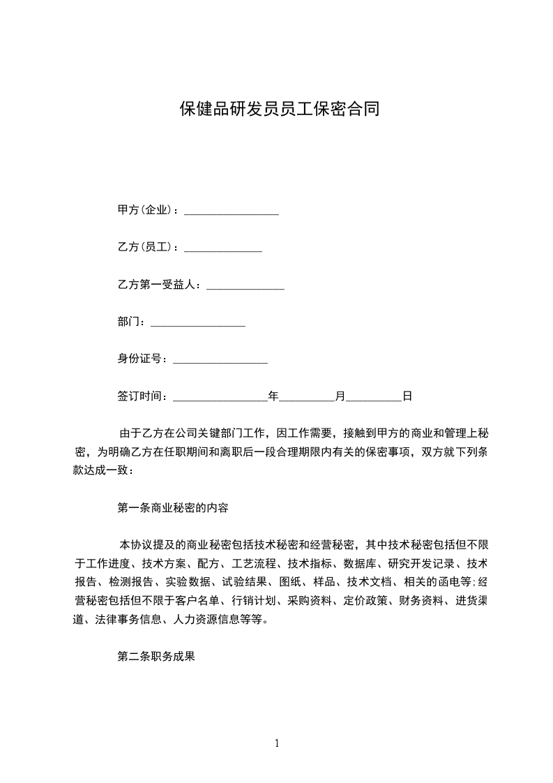 保健品研发员员工保密合同怎么写