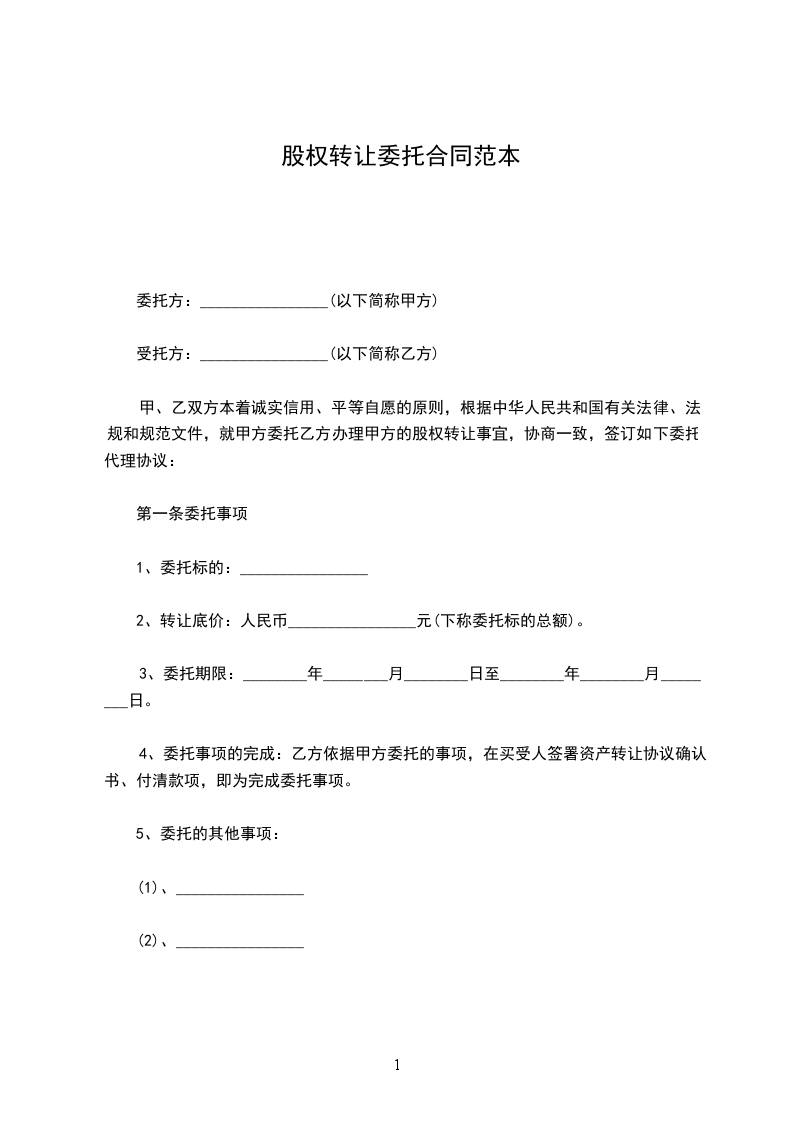 甲、乙双方本着诚实信用、平等自愿的原则,根据中华人民共和国有关法律、法规和规范文件,就甲方委托乙方办理甲方的股权转让事宜,协商一致,签订如下委托代理协议: