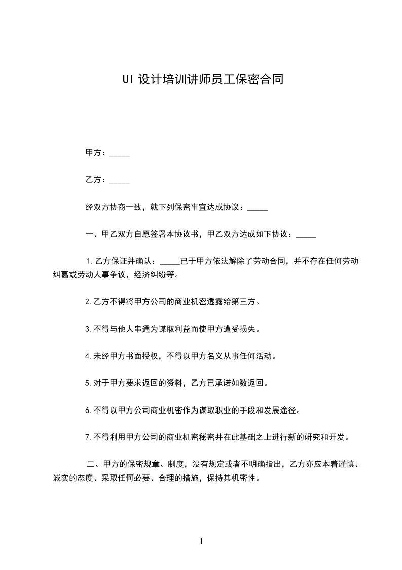 UI设计培训讲师员工保密合同