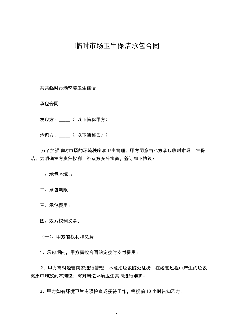 甲乙双方经友好协商,就甲方清洁卫生工作承包给乙方一事,达成以下一致协议,以资共同遵守: