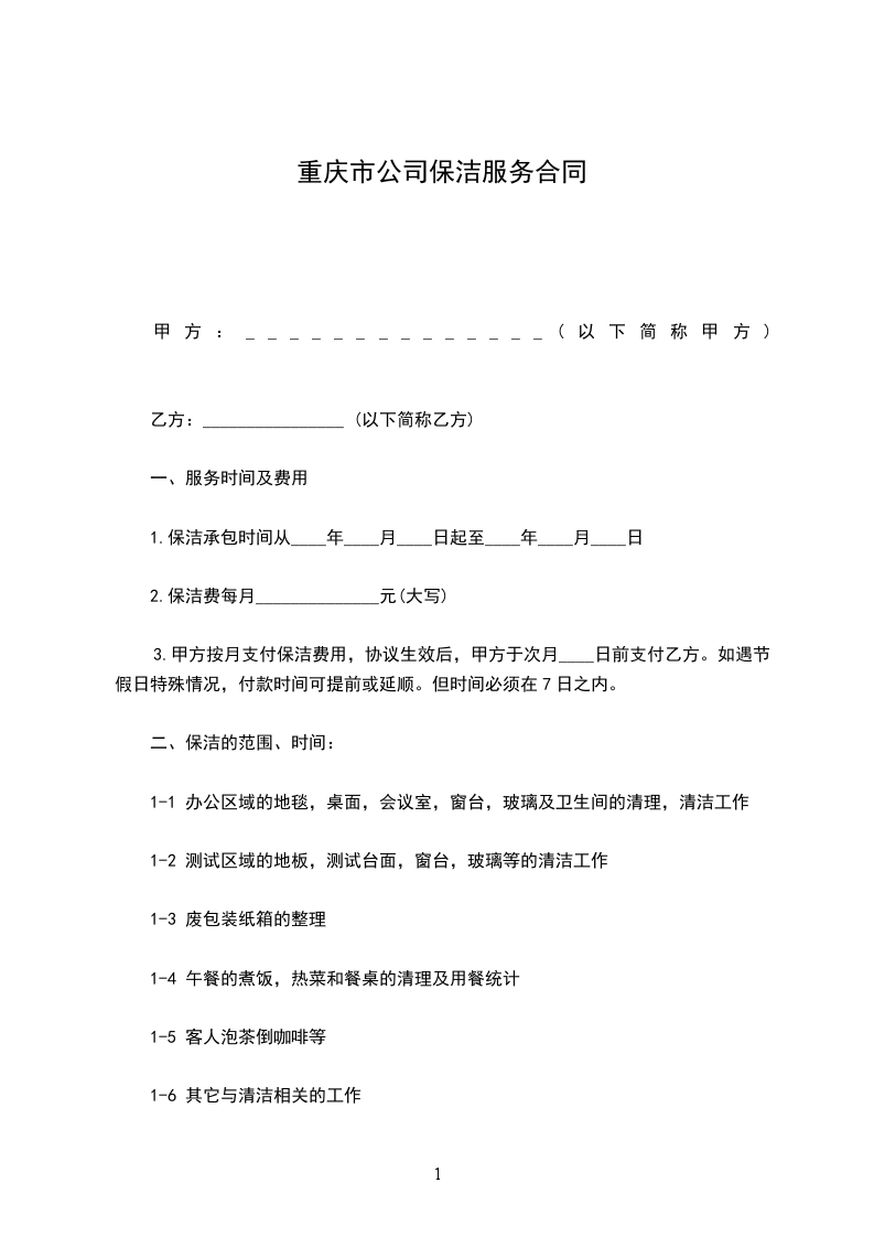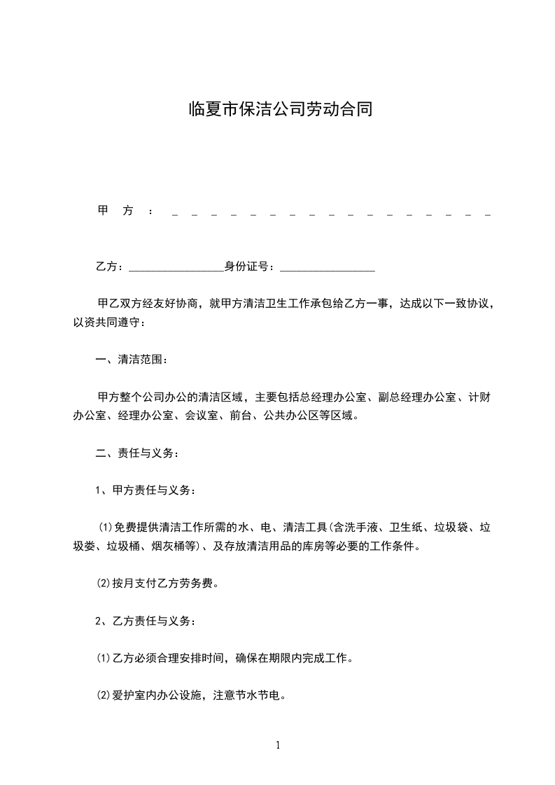 1、清洁工作劳务费为每天_______元,甲方支付全部劳务报酬,所发生的一切费用由乙方自己负责。