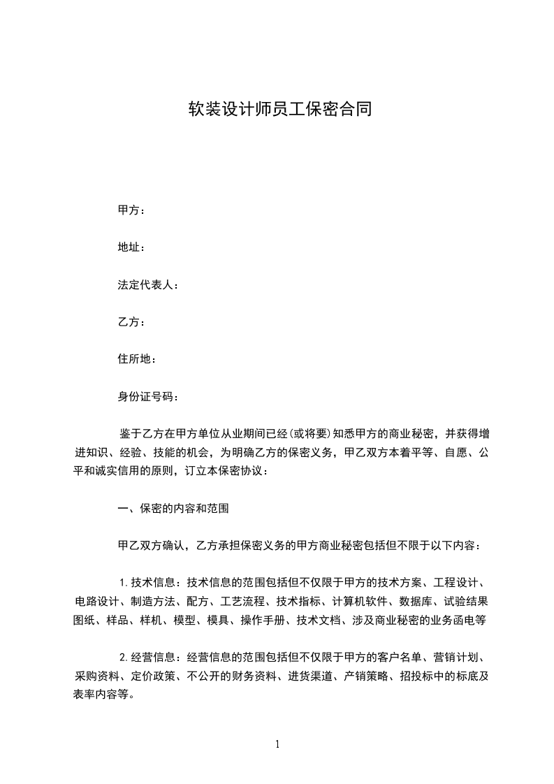 软装设计师员工保密合同