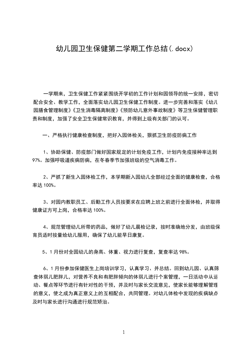 一、严格执行健康检查制度,把好入园体检关,狠抓卫生防疫防病工作