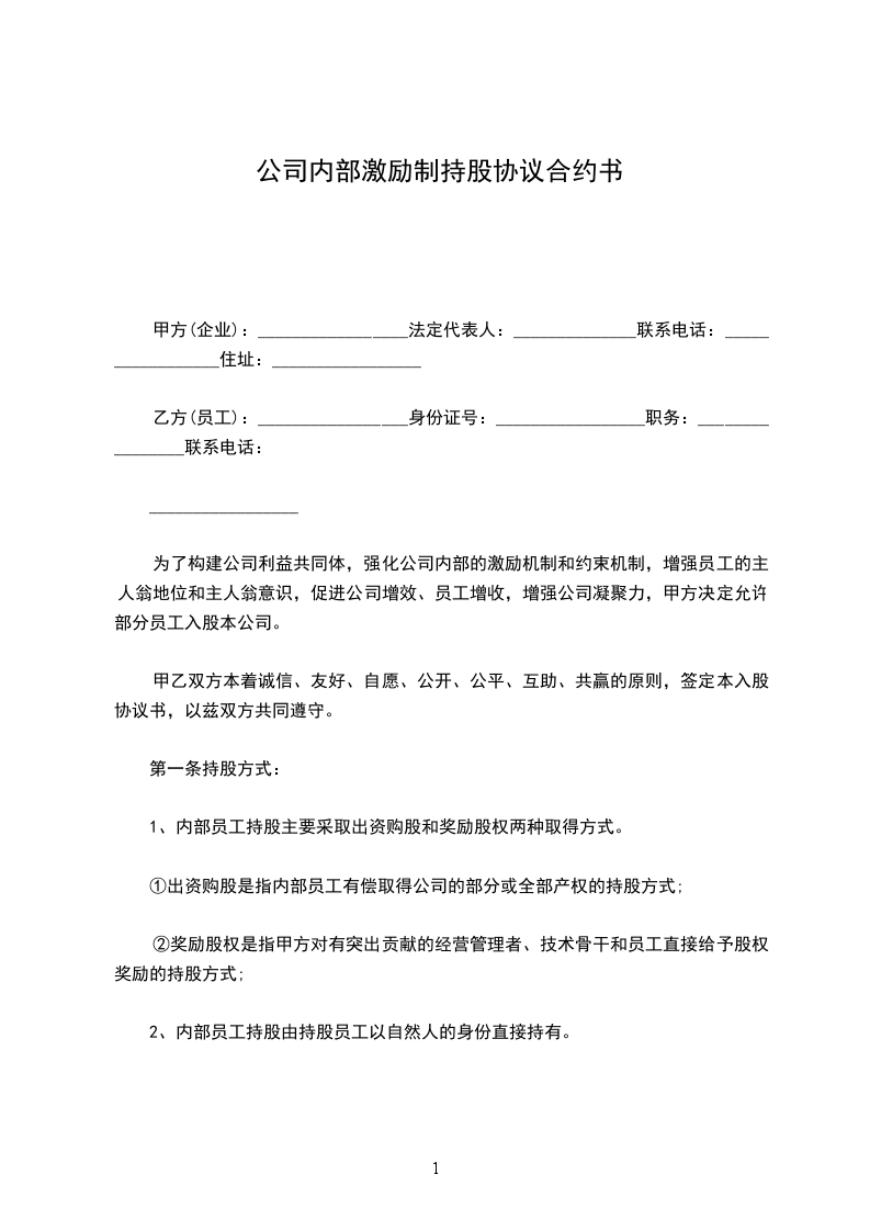 为了构建公司利益共同体,强化公司内部的激励机制和约束机制,增强员工的主人翁地位和主人翁意识,促进公司增效、员工增收,增强公司凝聚力,甲方决定允许部分员工入股本公司。
