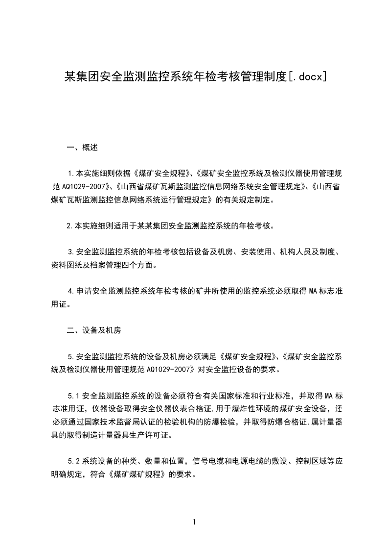 2.本实施细则适用于某某集团安全监测监控系统的年检考核。