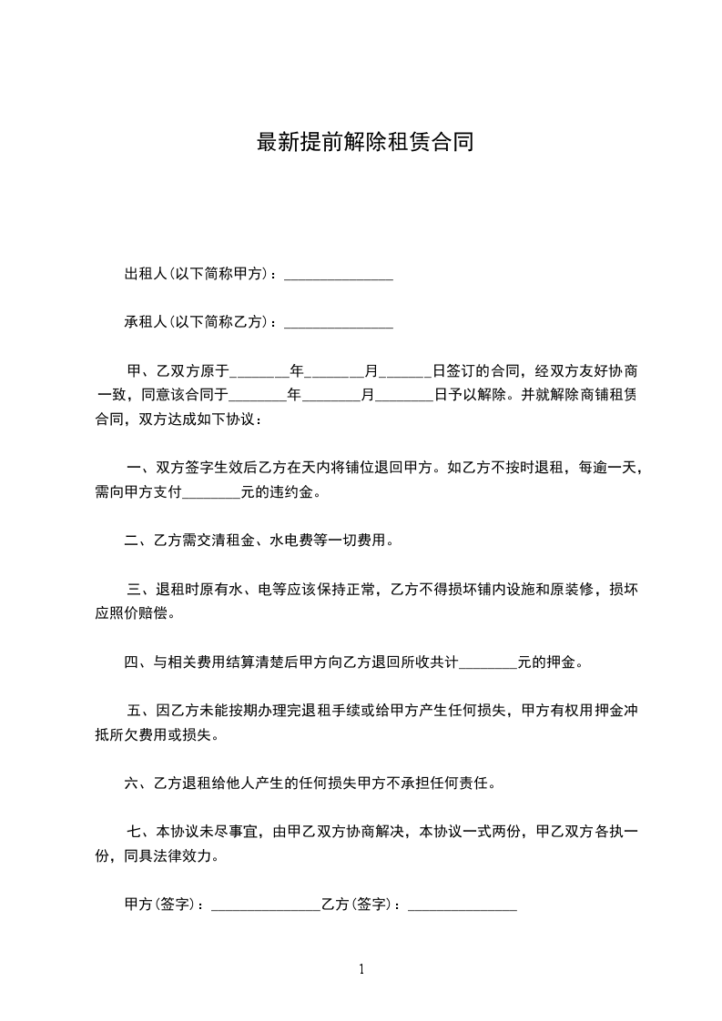 最新提前解除租赁合同