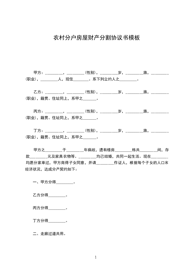 四、本协议生效后,_____________及时持相关手续去房产管理部门办理变更登记。
