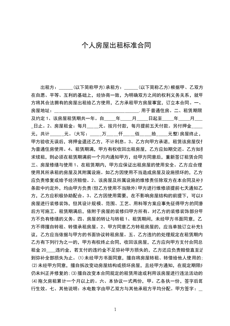 出租方(甲方)____________________身份证号码:____________________