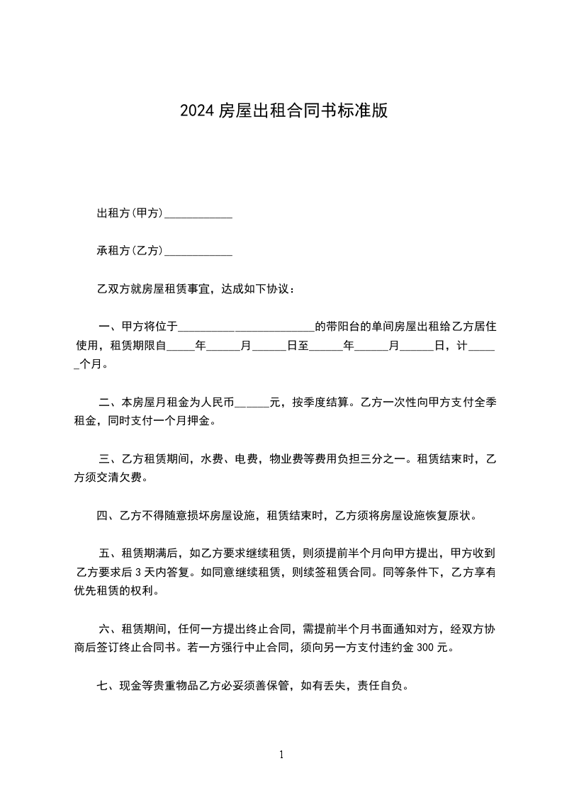 3.2 租赁期满,甲方有权收回该房屋,乙方应如期返还。乙方需继续承租该房屋的,则应于租赁期满前______个月,向甲方提出续租书面要求,经甲方同意后重新签订租赁合同。