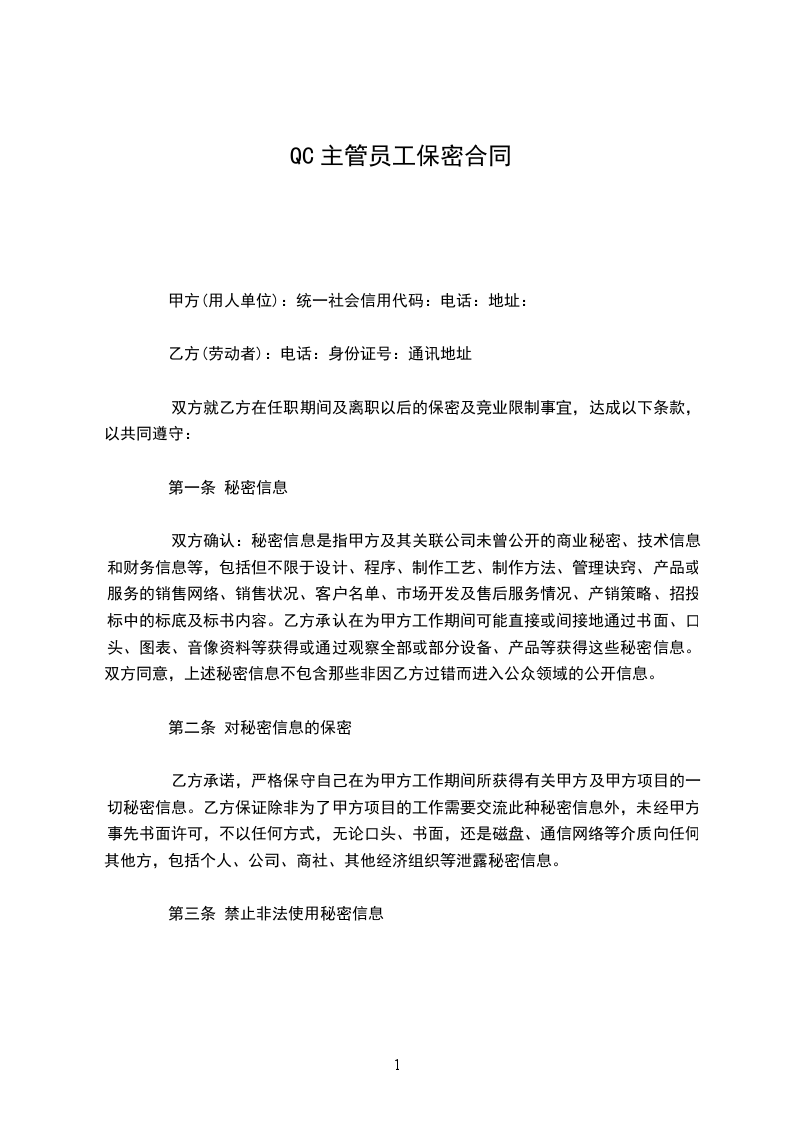 根据国家有关部门推荐使用《员工保密合同》,结合本公司实际,鉴于甲方在乙方任职,并将获得乙方支付的相应报酬,双方就甲方在乙方任职期间及离职以后保守乙方技术秘密和其他商业秘密的有关事项,订定下列条款共同遵守:
