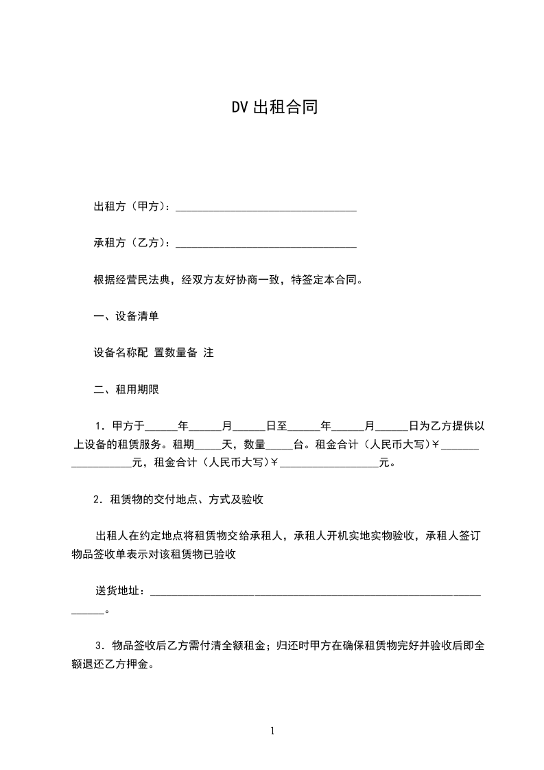 1.甲方于______年______月______日至______年______月______日为乙方提供以上设备的租赁服务。租期_____天,数量_____台。租金合计(人民币大写)¥__________________元,租金合计(人民币大写)¥__________________元。