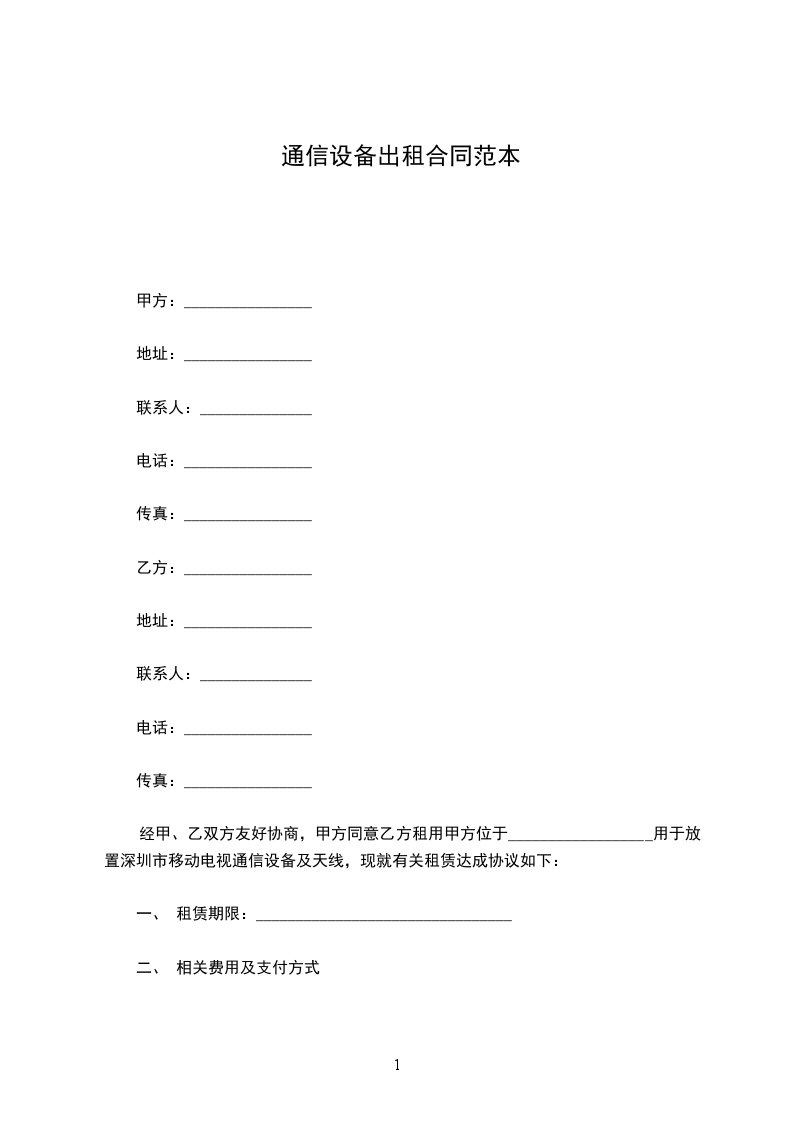 经甲、乙双方友好协商,甲方同意乙方租用甲方位于__________________用于放置深圳市移动电视通信设备及天线,现就有关租赁达成协议如下: