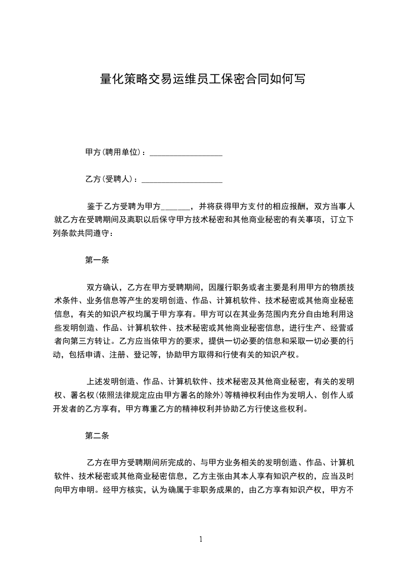 乙方在甲方受聘期间,必须遵守甲方规定的任何成文或不成文的保密规章、制度,履行与其工作岗位相应的保密职责。