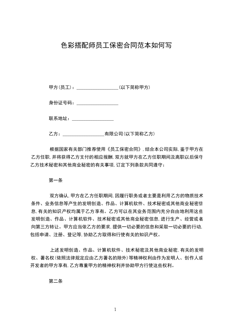 根据国家有关部门推荐使用《员工保密合同》,结合本公司实际,鉴于甲方在乙方任职,并将获得乙方支付的相应报酬,双方就甲方在乙方任职期间及离职以后保守乙方技术秘密和其他商业秘密的有关事项,订定下列条款共同遵守: