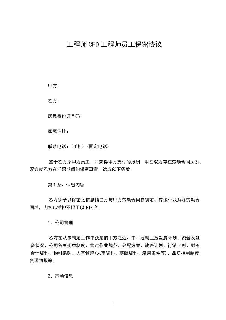 根据国家有关部门推荐使用《员工保密合同》,结合本公司实际,鉴于甲方在乙方任职,并将获得乙方支付的相应报酬,双方就甲方在乙方任职期间及离职以后保守乙方技术秘密和其他商业秘密的有关事项,订定下列条款共同遵守: