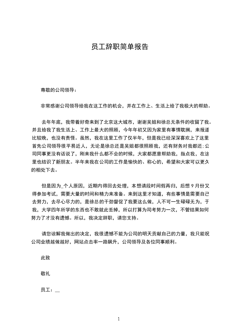 自__年入职以来,我一直很喜欢这份工作,但因某些个人原因,我要重新确定自己未来的方向,最终选择了开始新的工作。