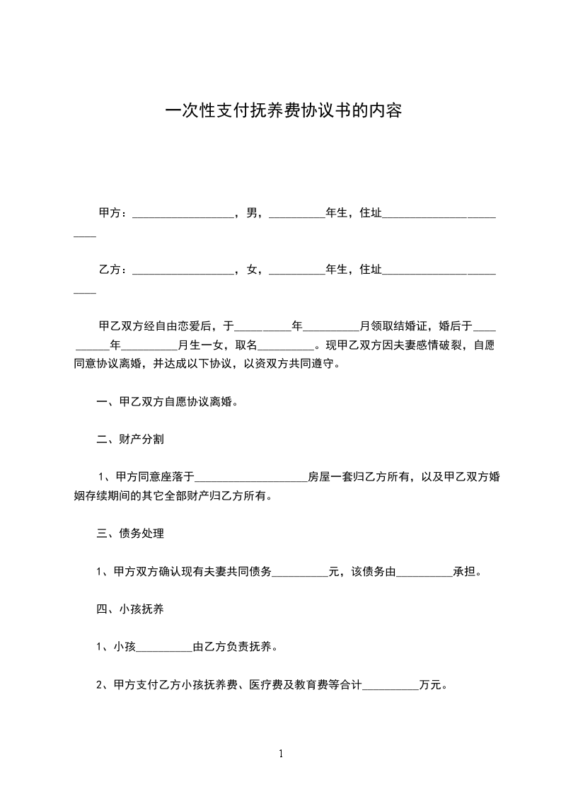 2、甲方支付乙方小孩抚养费、医疗费及教育费等合计__________万元。